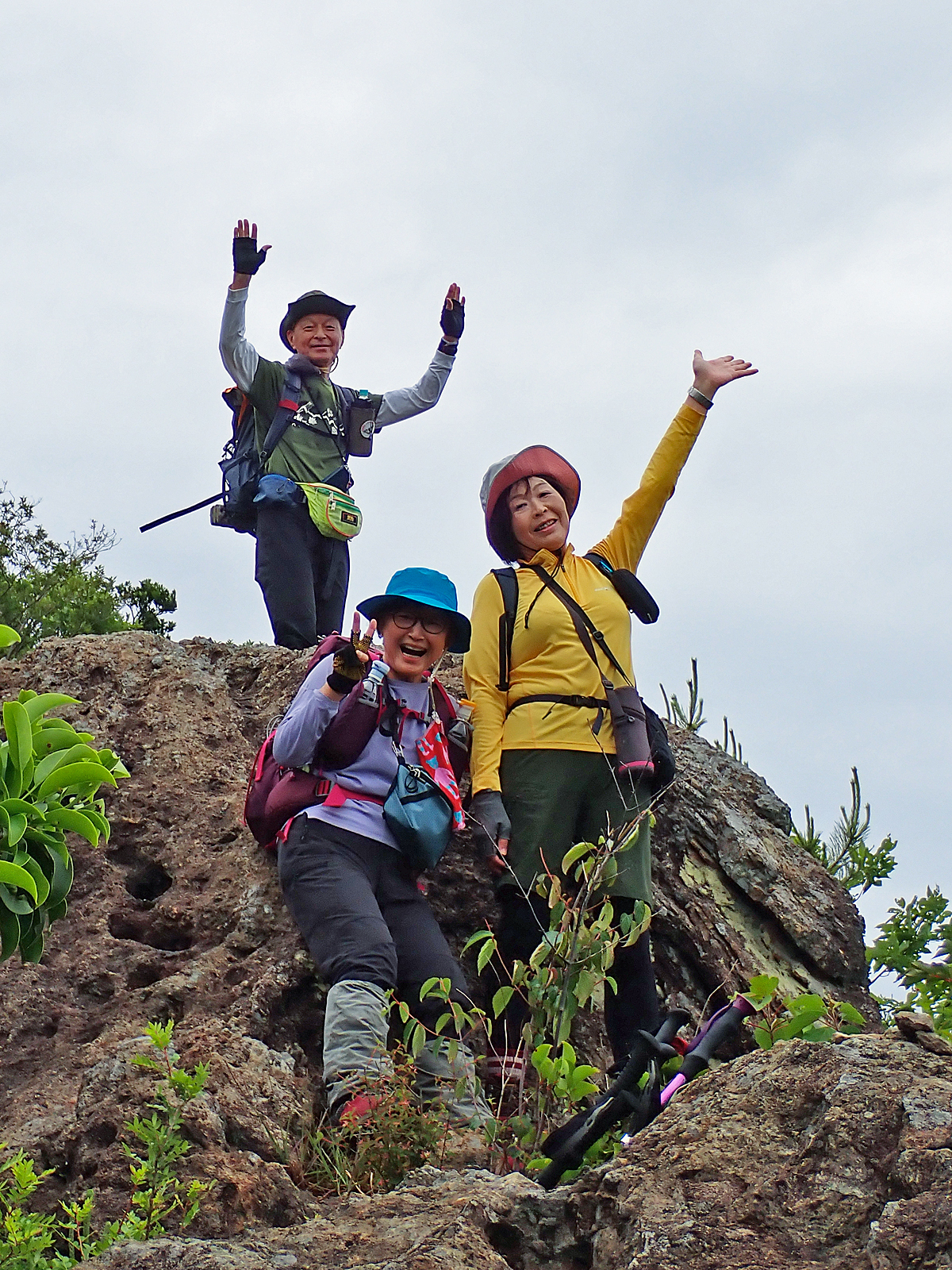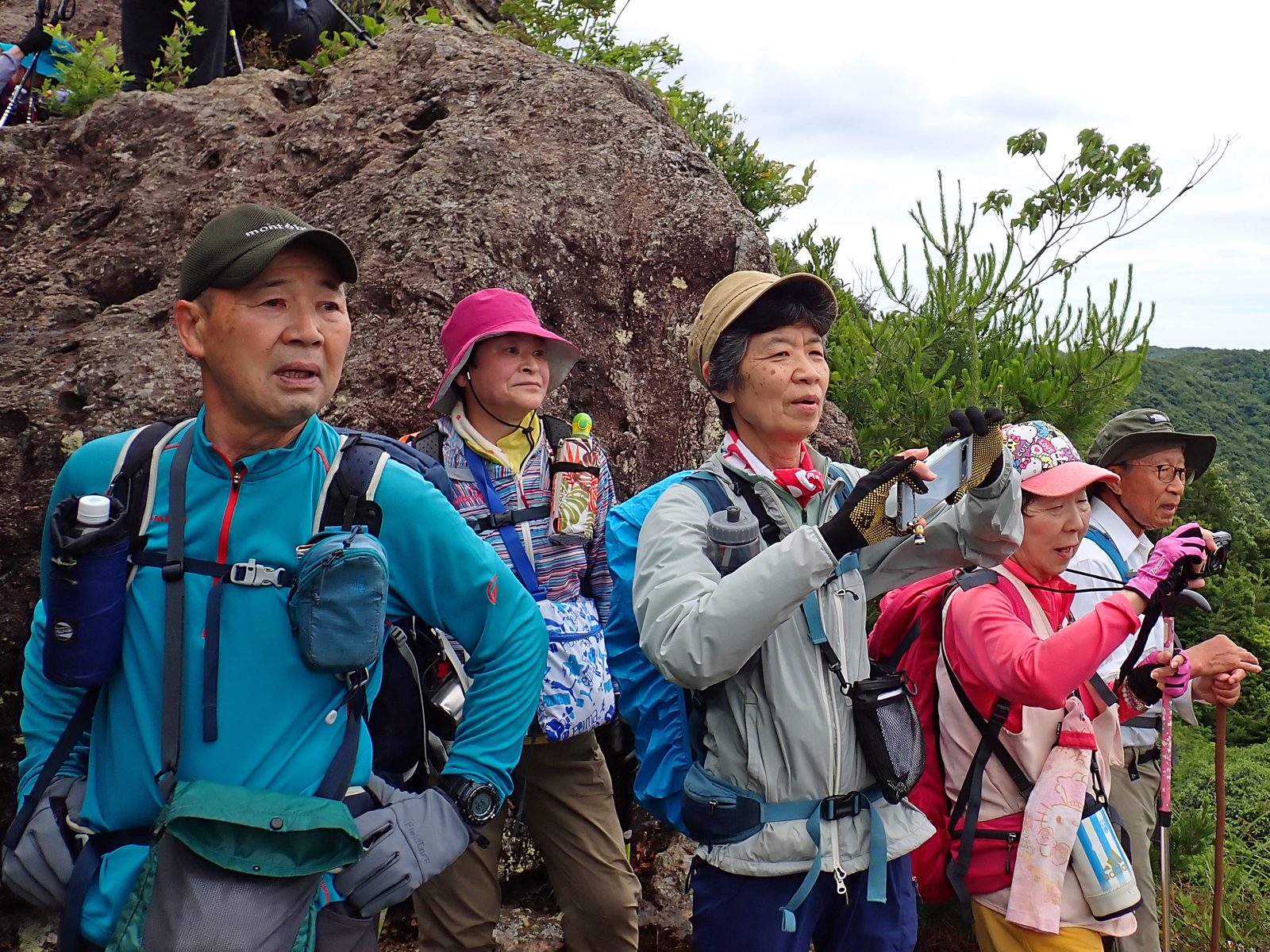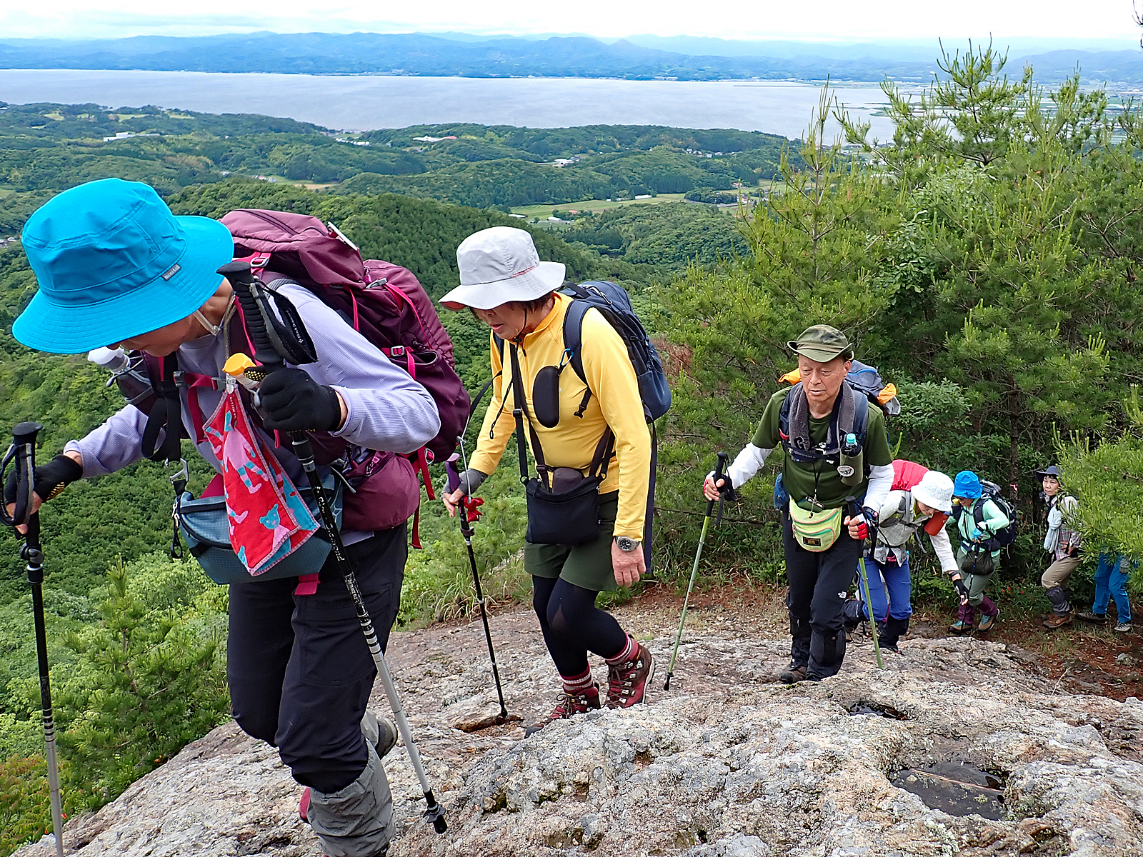 山頂は近年刈り払われ素晴らしい展望だけれど、あいにくの小雨で大山は見えなかった。下りの途中には出雲、三瓶方面が望める展望台もある。春、秋にのんびり縦走するのも良い。(平井)
