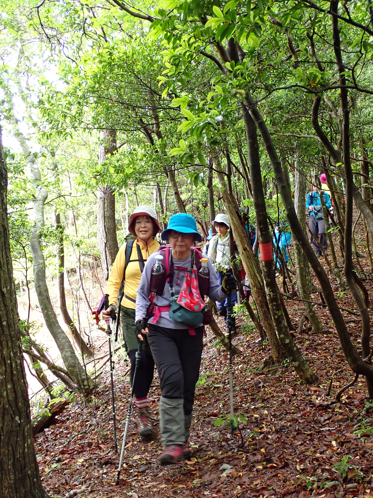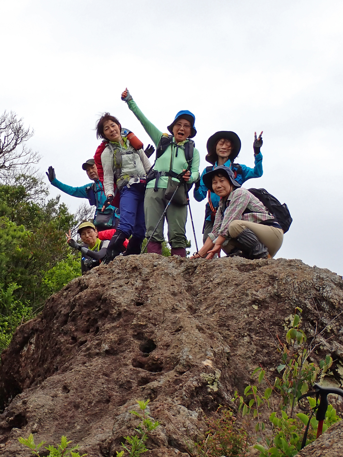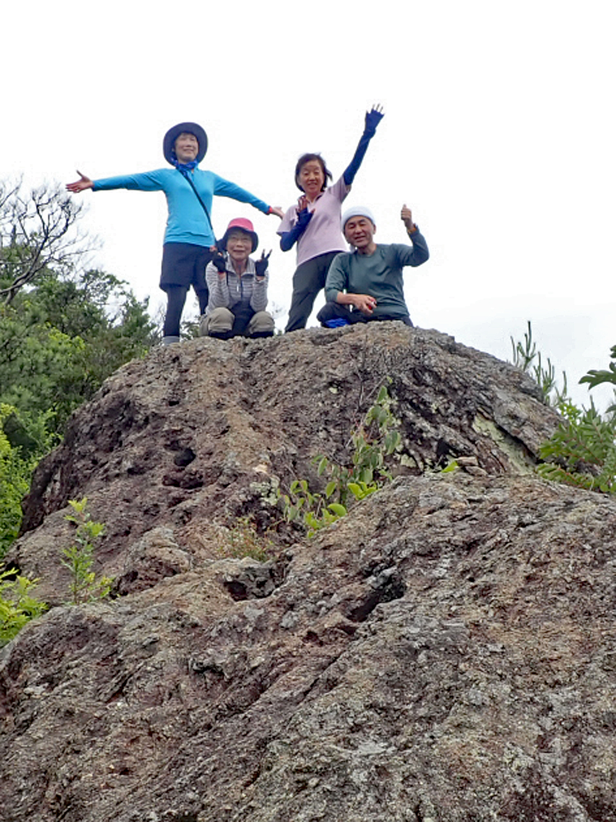 山頂は近年刈り払われ素晴らしい展望だけれど、あいにくの小雨で大山は見えなかった。下りの途中には出雲、三瓶方面が望める展望台もある。春、秋にのんびり縦走するのも良い。(平井)