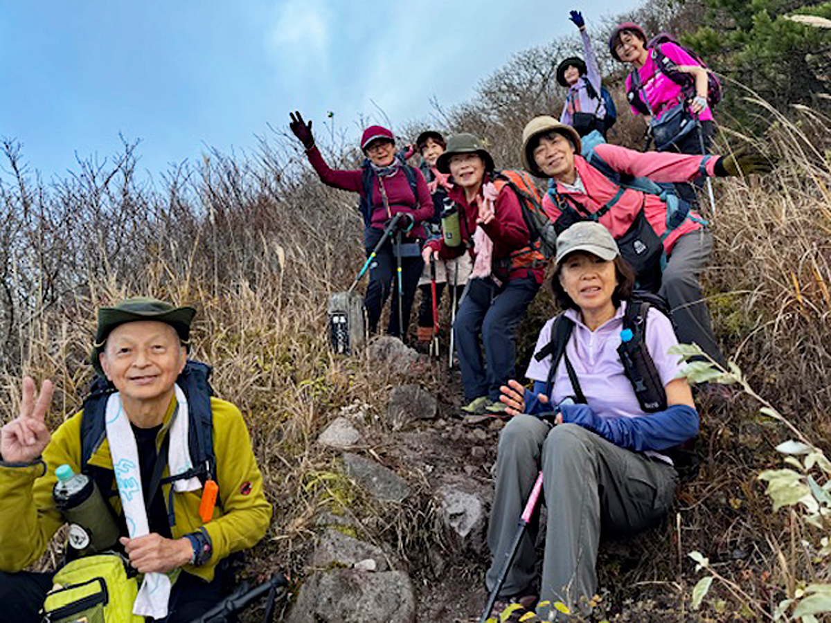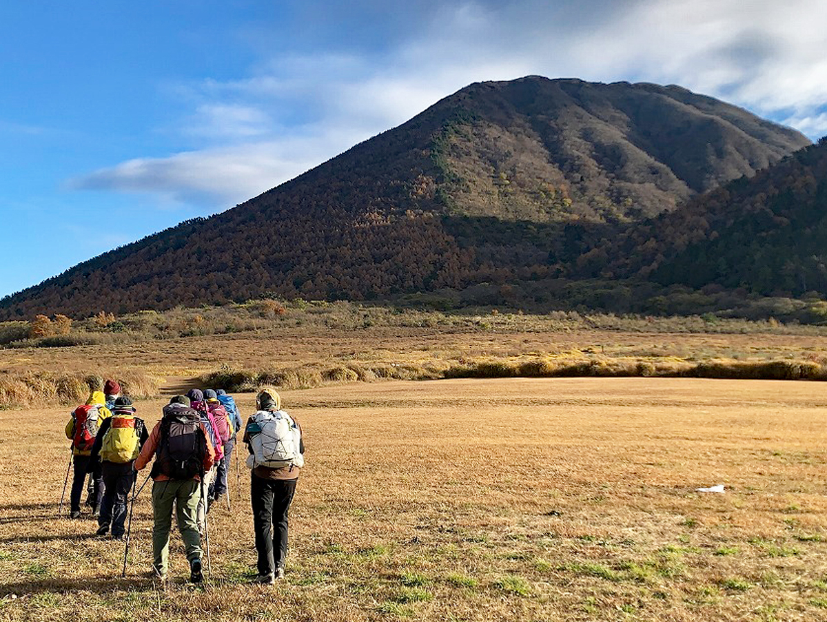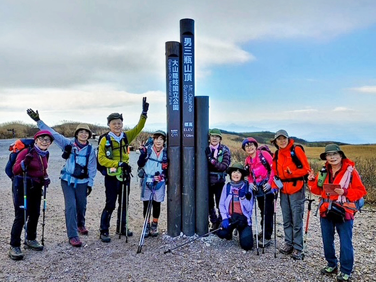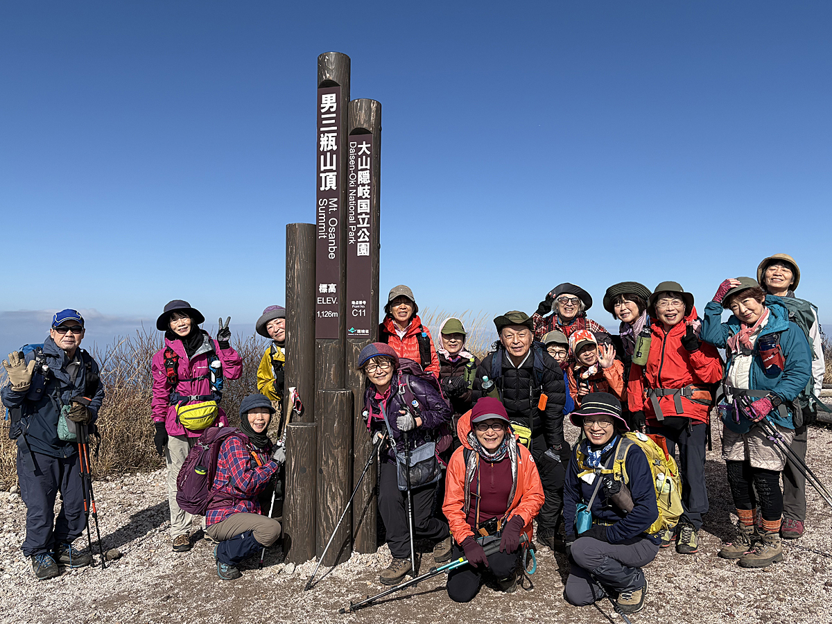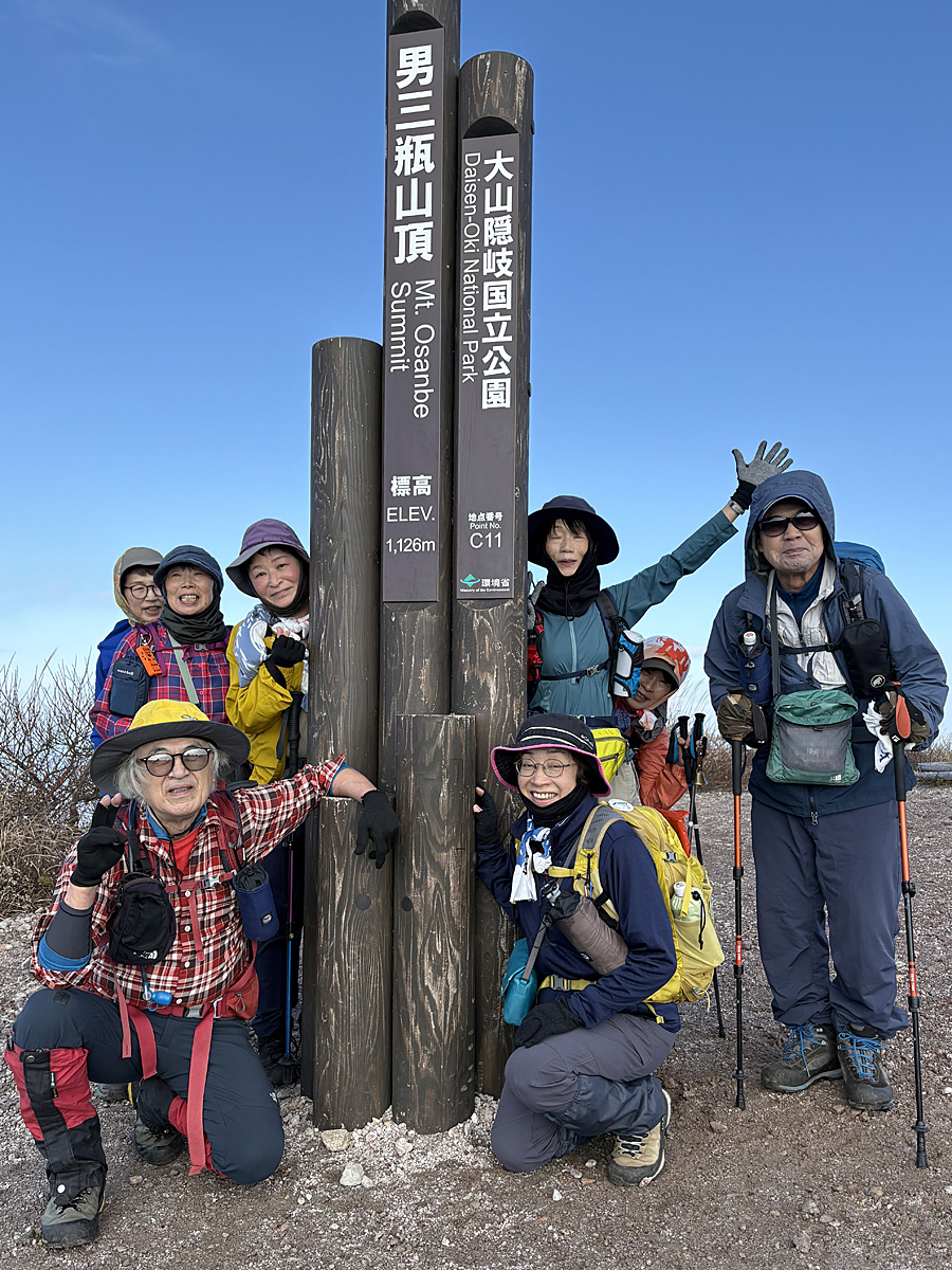 当日になって都合により男三瓶ピストンにコース変更をする。頂上近くになって晴れて視界がよくなった。360度の絶景に皆さん感動!三瓶山の紅葉は過ぎていましたが、頂上のススキが原の景色は最高でした。