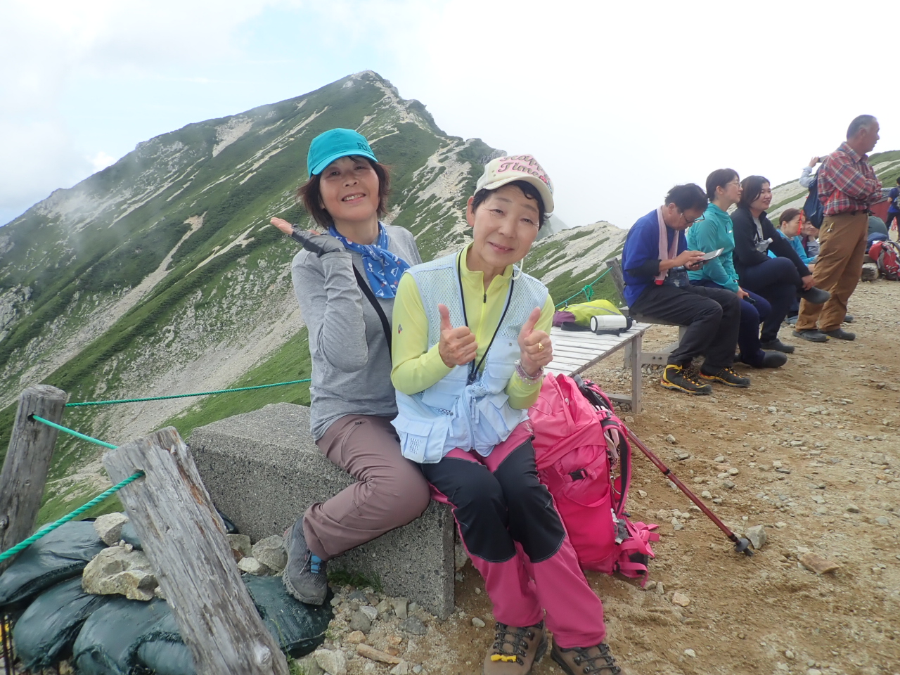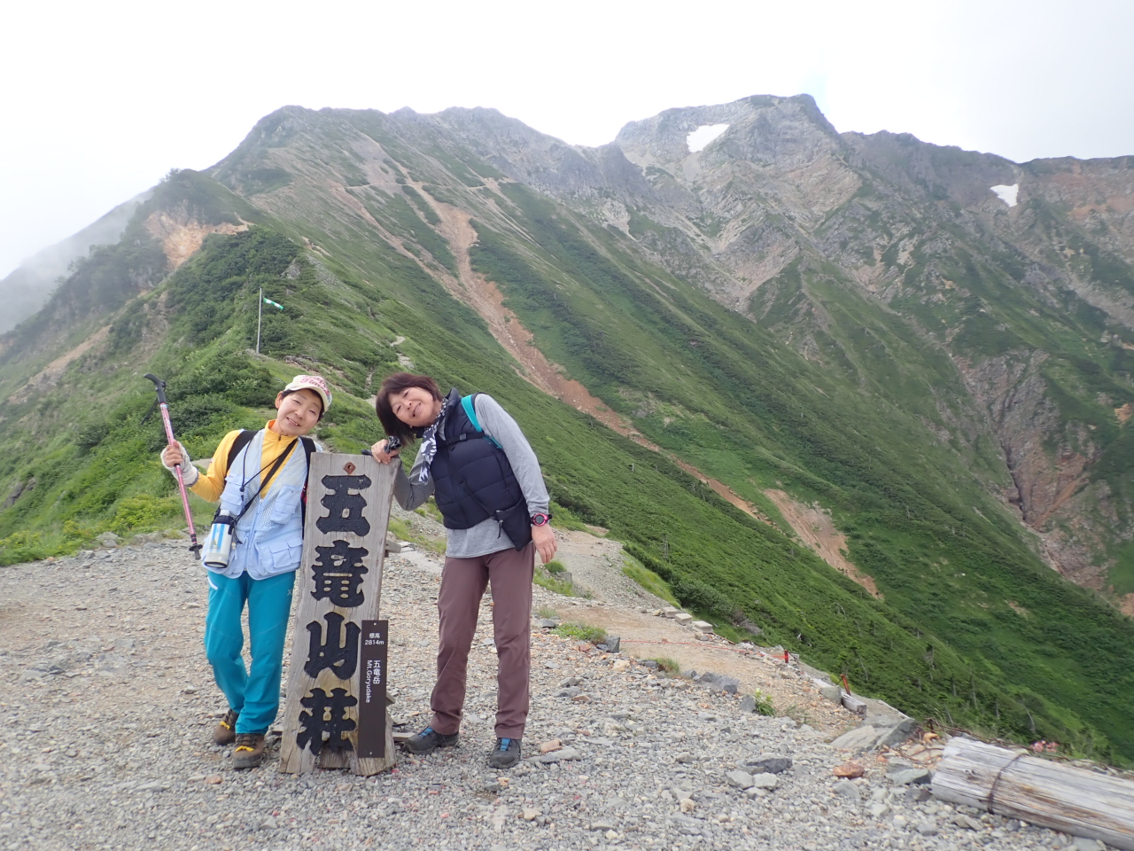 05_ついに到着。後方の唐松岳 2,696mを背景に記念写真