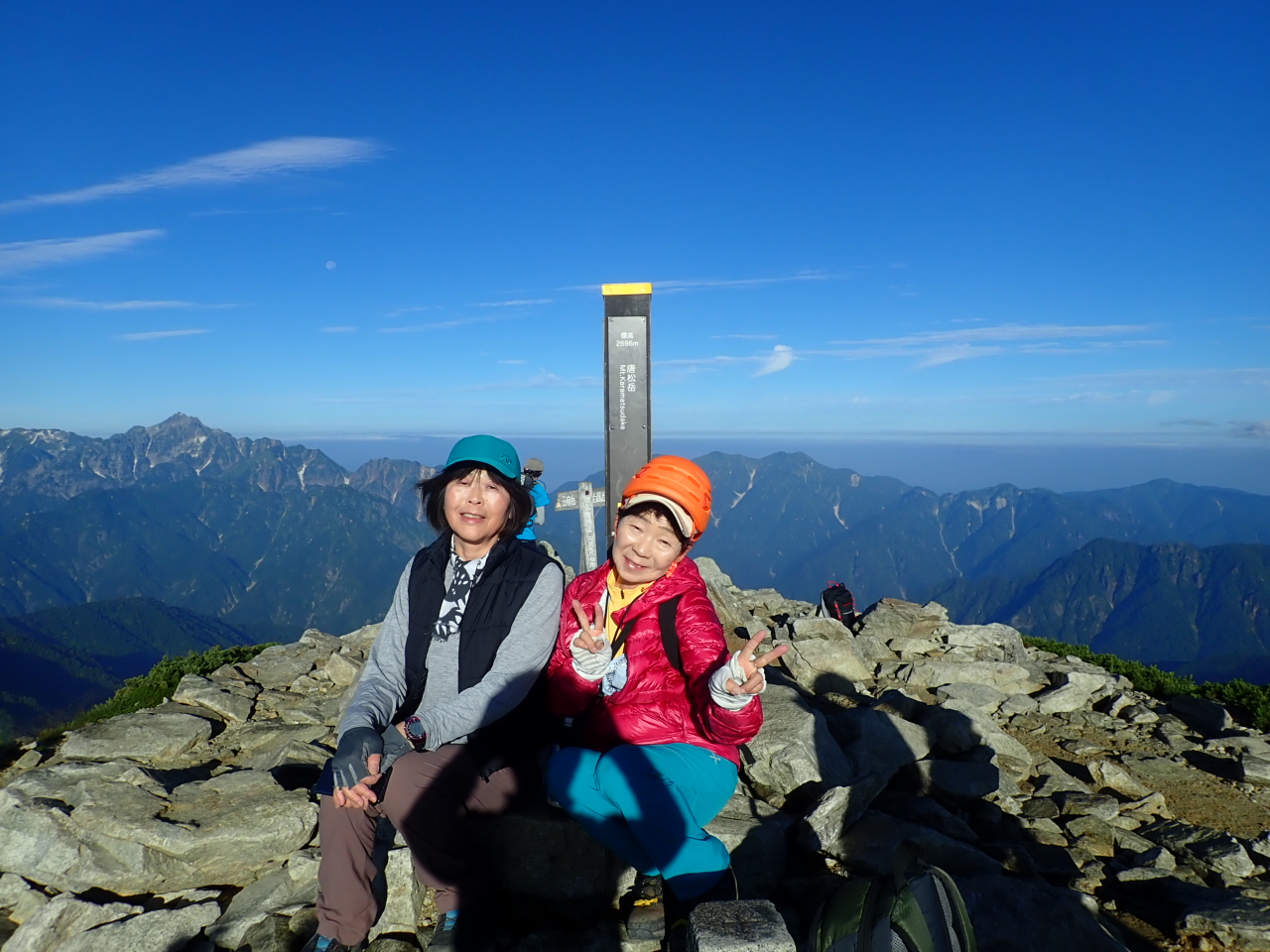 06_早朝、唐松岳山頂にて360℃の絶景に感激しながら記念撮影
