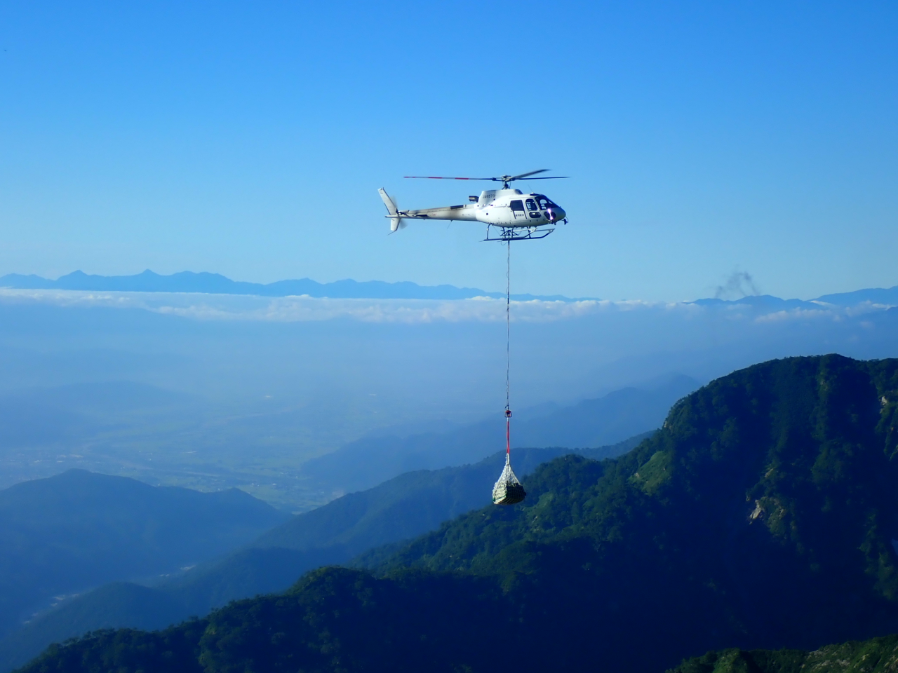 13_五竜岳に別れを告げ下山途中に、3回も物資を運ぶヘリコプターも大忙し