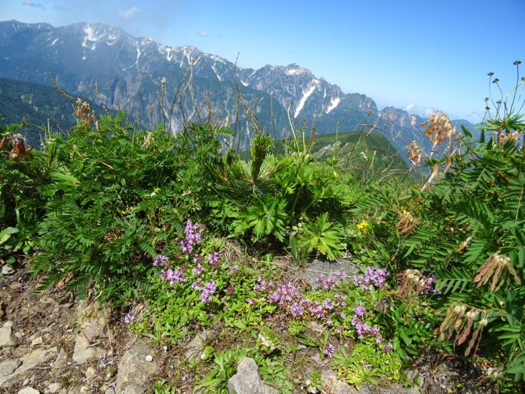 15_鹿島槍ヶ岳からの下山道・イブキジャコウソウと剱岳