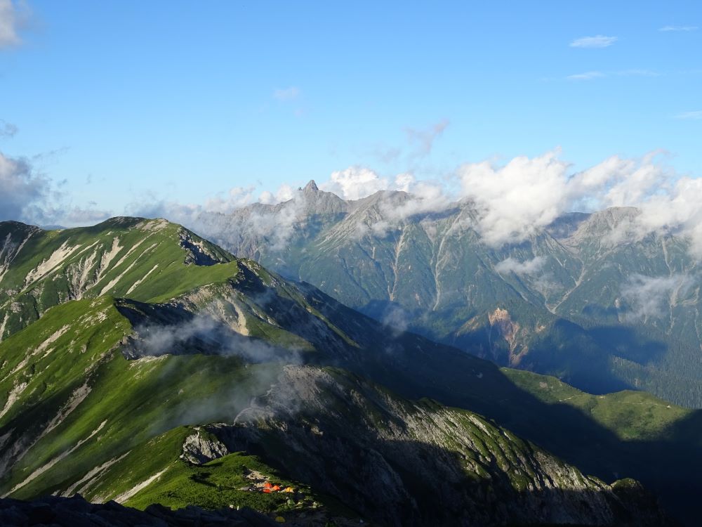 05_山小屋から来し方と槍ヶ岳
