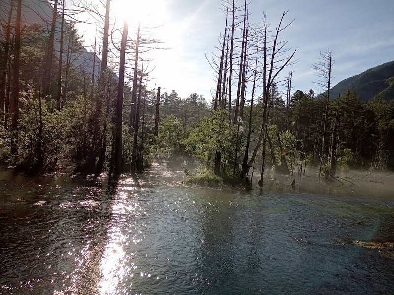 1 上高地から明神までは梓川右岸を歩く。岳沢湿原に立ち寄り