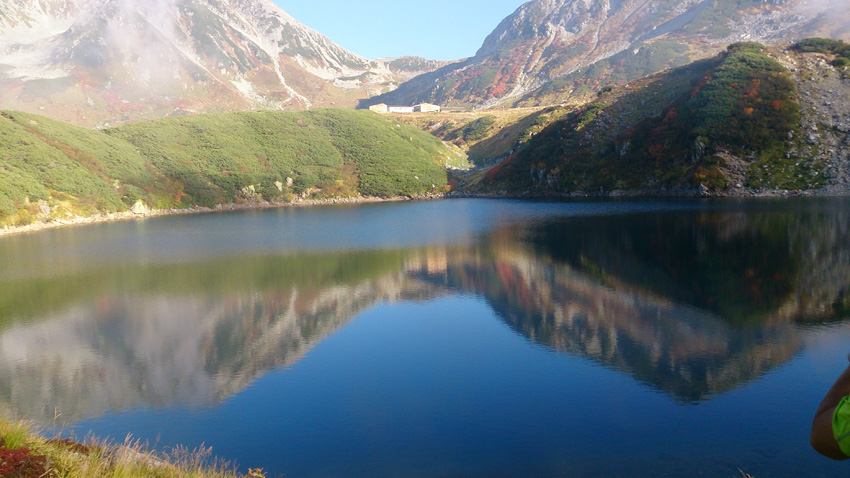 立山の映り込む、みくりが池で長旅の疲れを癒した