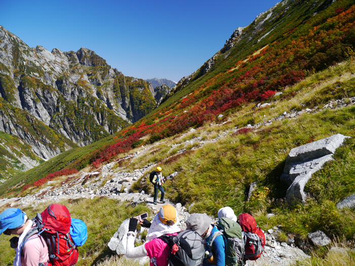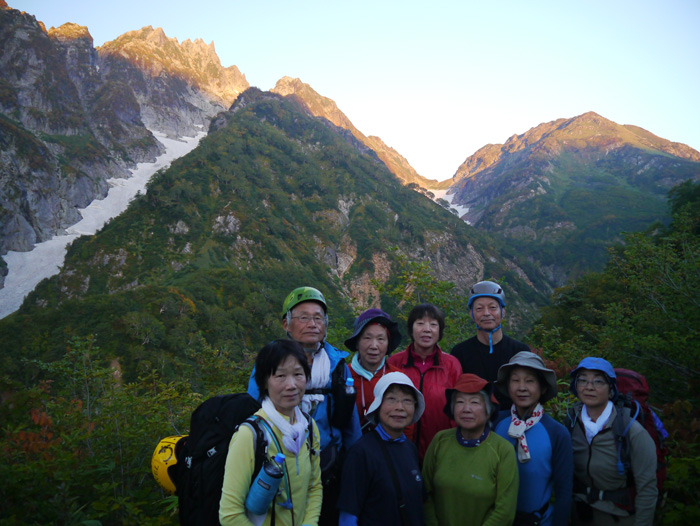 この日は長いため早朝4時に出発、仙人新道を下り劔沢雪渓を登り返す。劔御前小屋への登りはキツかった。紅葉の室堂平を眺めながらの下りは楽しかったが、室堂への登り返しは辛く最後の力を振り絞った。12時間のロングコースだったが全員がそれに耐え、無事にゴールできて皆で喜び合った。