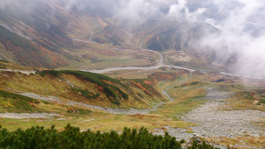 別山乗越から奥大日コースを下り、雷鳥沢を見下ろす