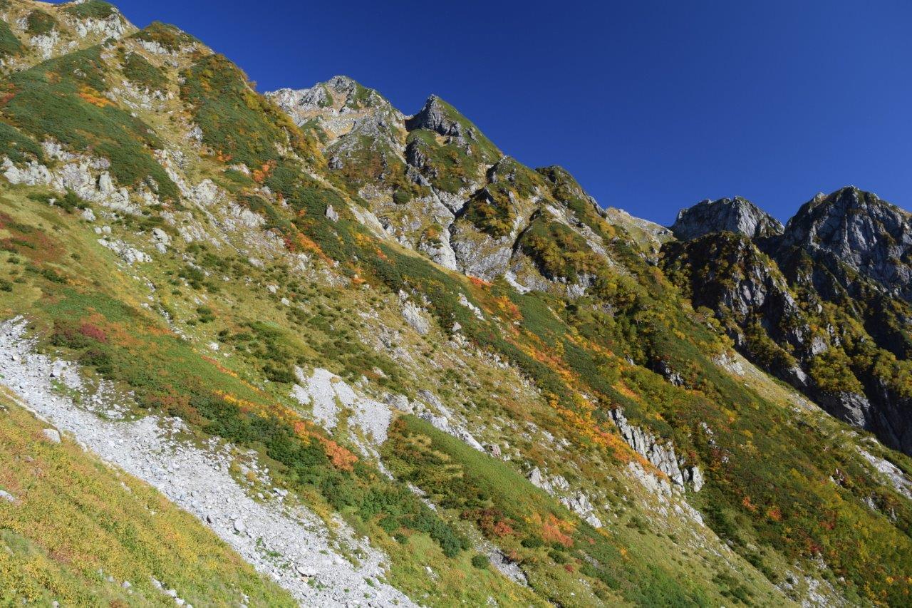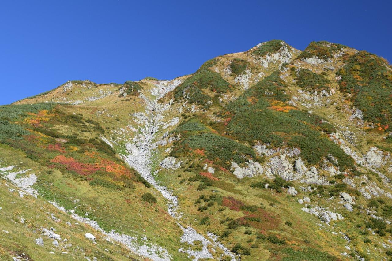 上を見上げる。前剱の下部辺りか