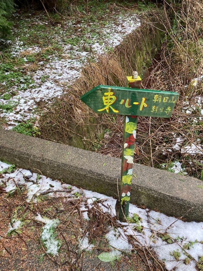 標高が上がるにつれて積雪量は増え、朝日山がいっぱしの雪山と化していた。