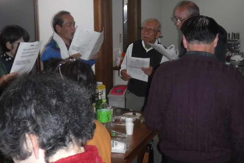 の川旅」の報告を頂いたあと、会長の挨拶・乾杯で開宴。参加会員から酒類等の差し入れが大量にあり、
