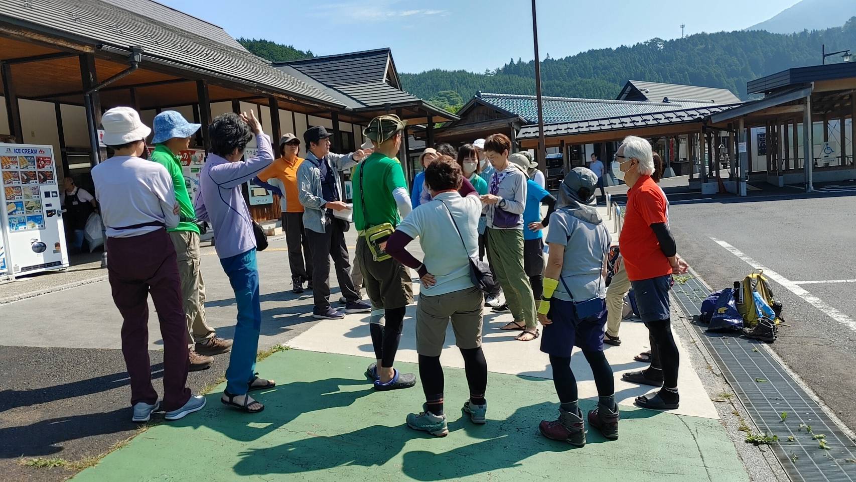 道の駅奥津温泉に着き、縦走コース、具体的な車回しについて打ち合わせる。