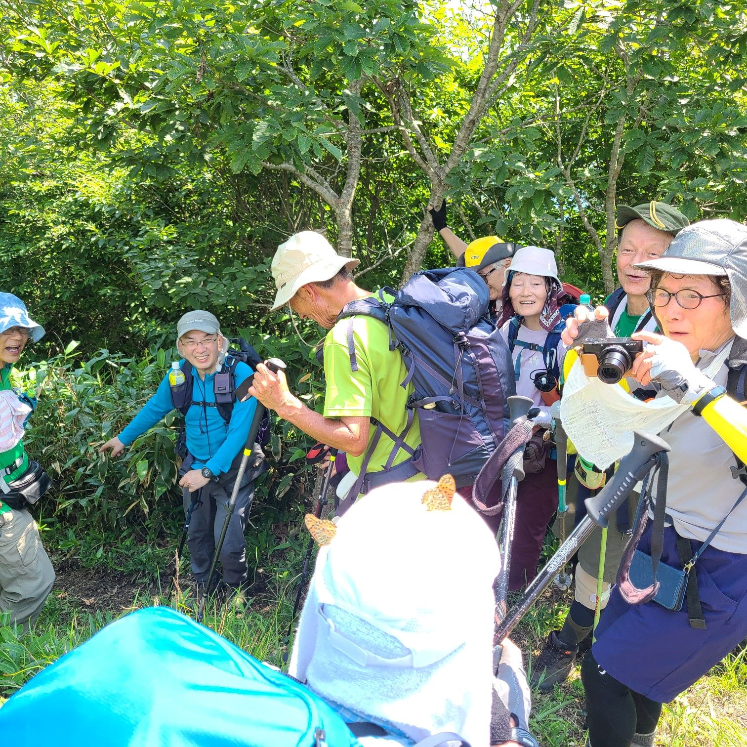 Sさんの頭に蝶が寄ってきて、みんな驚きの声