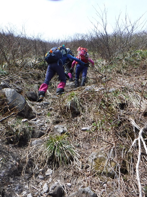 10 短かかった雪渓にお別れし、ここより振子山分岐へガレ場を登る
