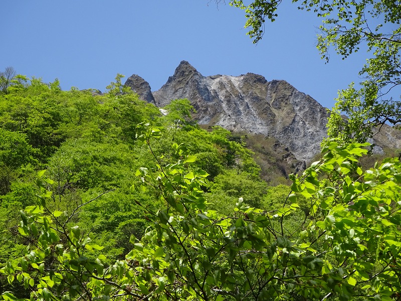 晴天続きの今年のGW。最後の日曜日も爽やかに晴れて、ブナ林の新緑に抱かれた快適な山行であった。