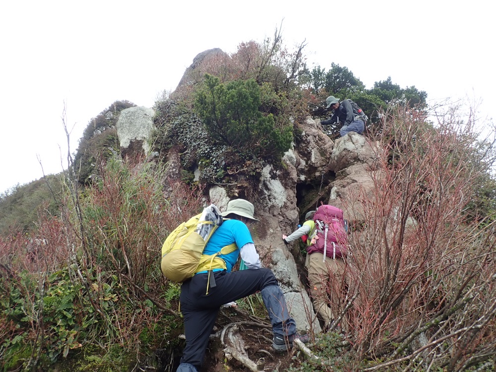 キャンプ場からの直登コースは、登山口付近の工事、ロープの急登や藪漕ぎであった。