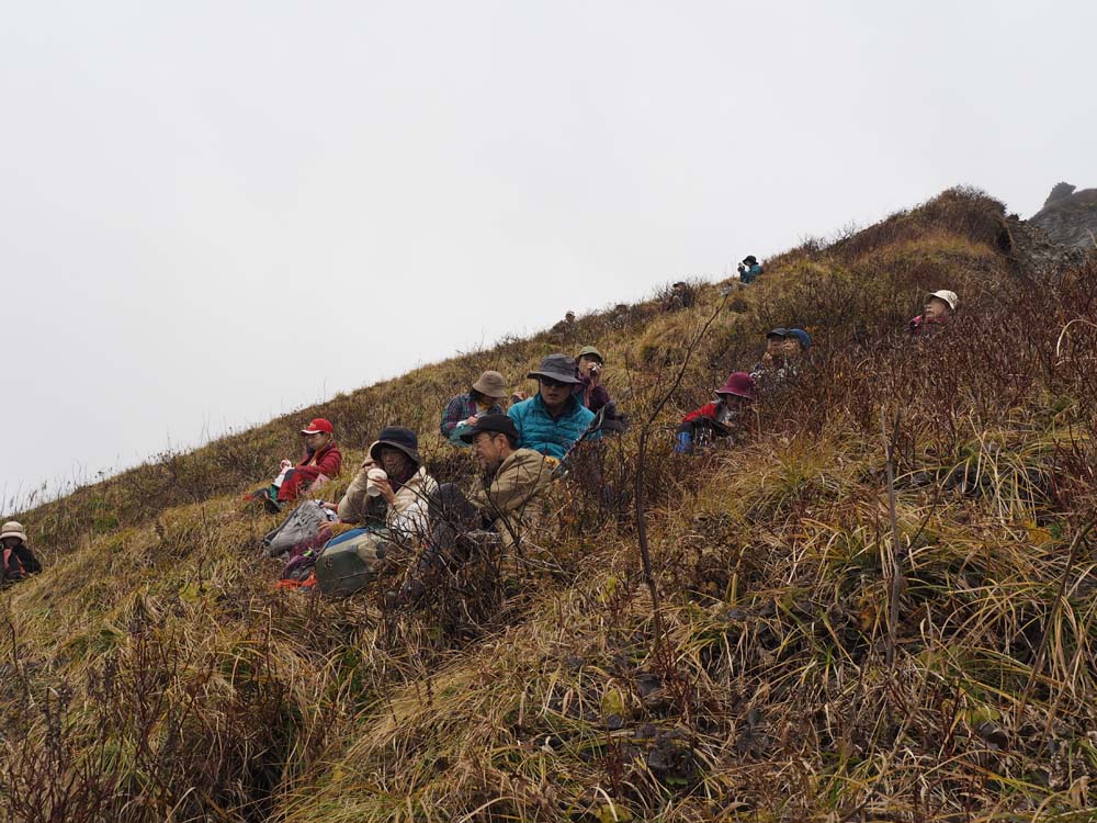 キリン尾根での昼食や 最高地点1550m付近では 周囲は激しく雲が沸き西へと流れて行く。
