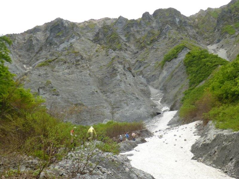 この沢は水無川で 雪解け水は地下に浸透していて乾いていた。