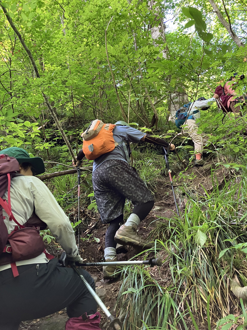 ここで体調を崩す人が出たが、メンバーで荷物を分担して空身になり無事に下山できた。