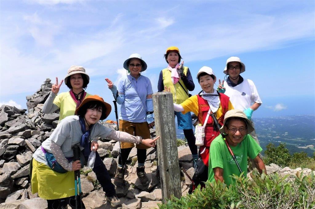 三鈷峰バックに集合写真。