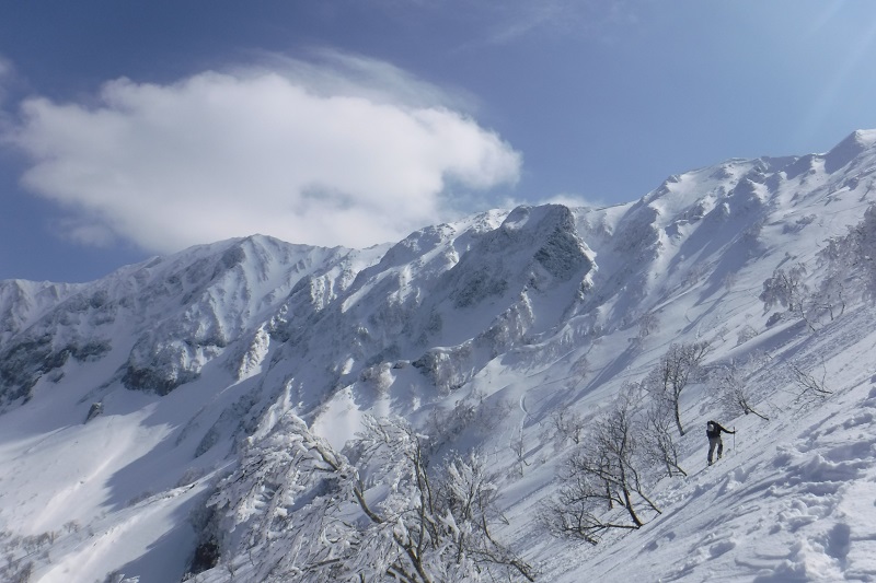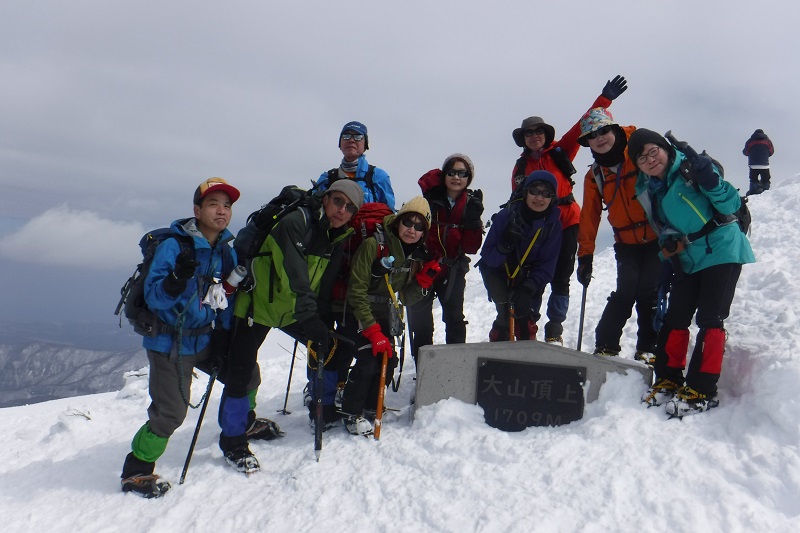 大山もこの時期では近年にない雪量であった。やや風があったものの絶好の晴天で