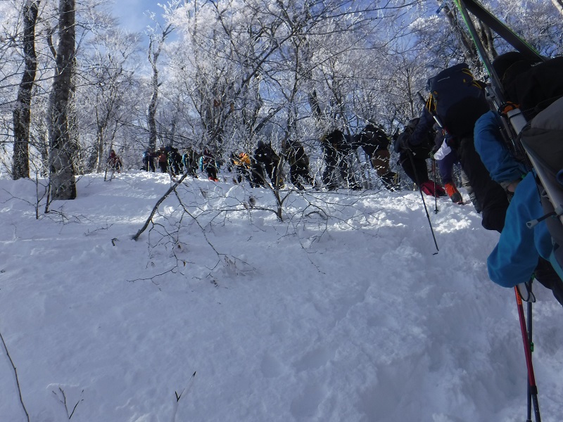 このところ週末に悪天候が続き3週間ぶりの定例山行だった。今冬は後半に降雪が多く