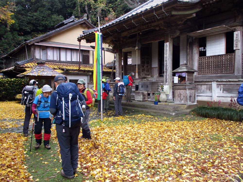 朝日寺に到着。イチョウの落ち葉が綺麗
