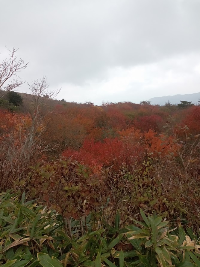 周囲の展望は紅葉が見頃となっており楽しみながら下山できた。三井野原でりんごや大根等を購入し