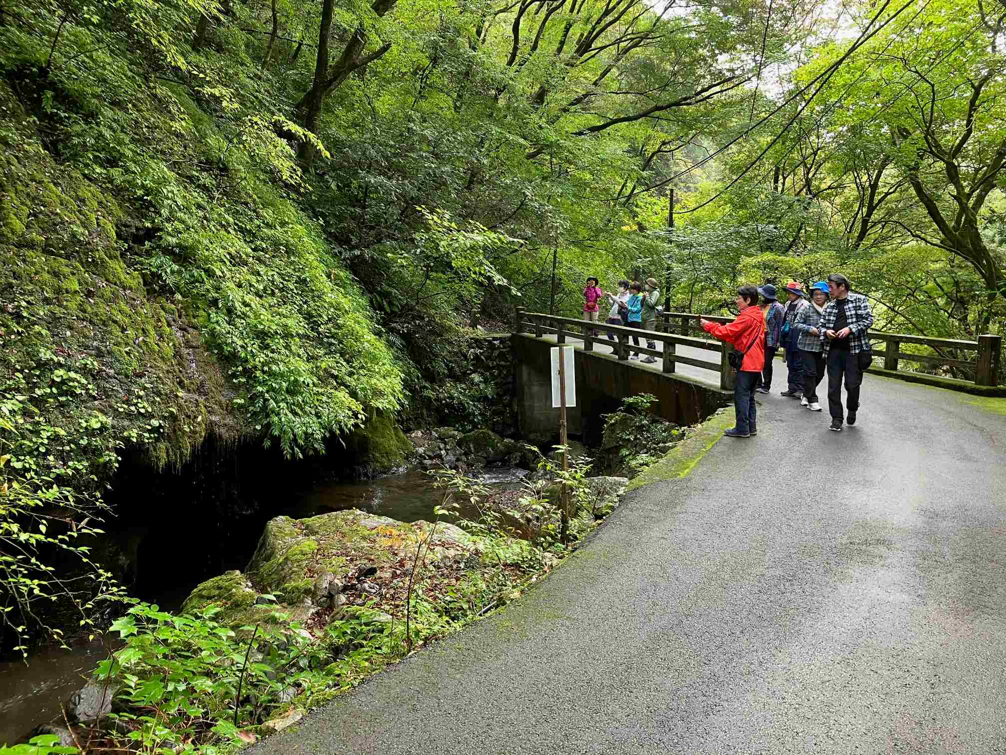 神庭の滝は、幅20m高さ110mの壮大な滝で、中国地方随一と言われている。直下まで近づいて、迫力に圧倒された。猿が大挙して遊歩道に現れることも知られているが、この日は出て来なかった。