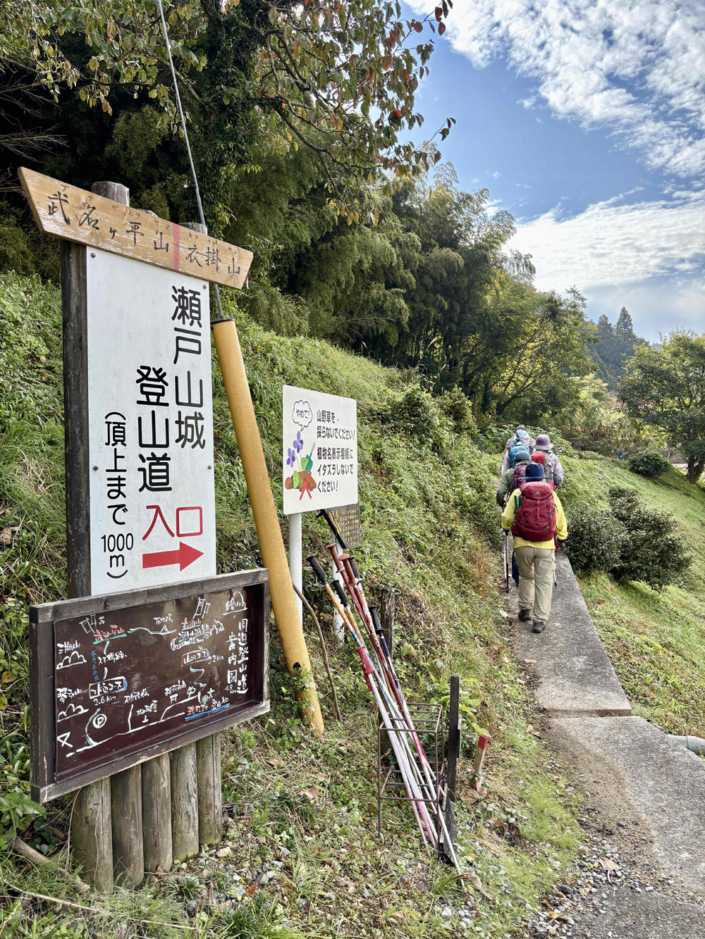 コースタイム:運動公園8:00−道の駅とんばら9:00−登山口駐車場9:30−瀬戸山城跡10:10/11:00