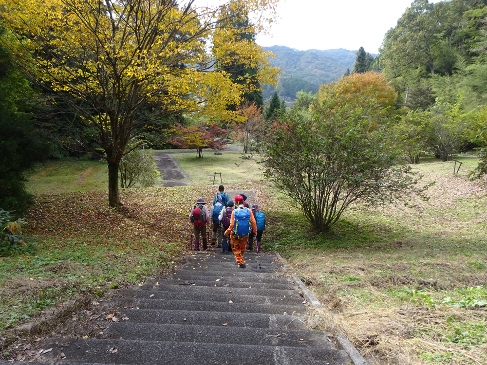 下りはロープの道で旧スキー場を通り、紅葉の美しい公園に下って終了した。