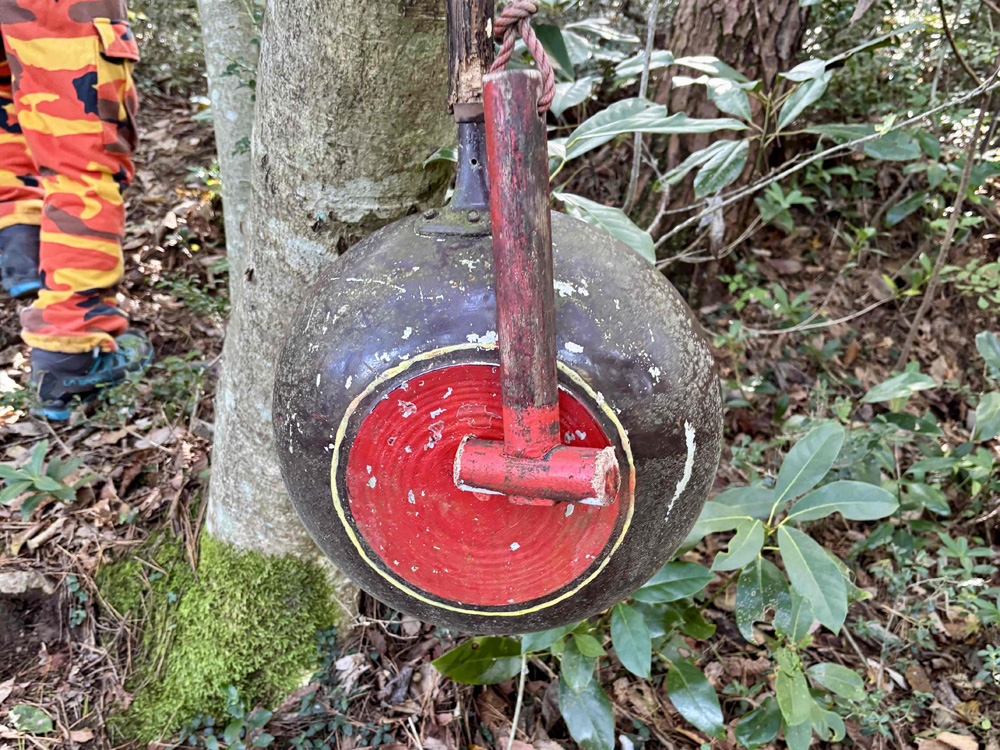 登山道の所々に置いてあるフライパン。道案内やクマよけにはなる