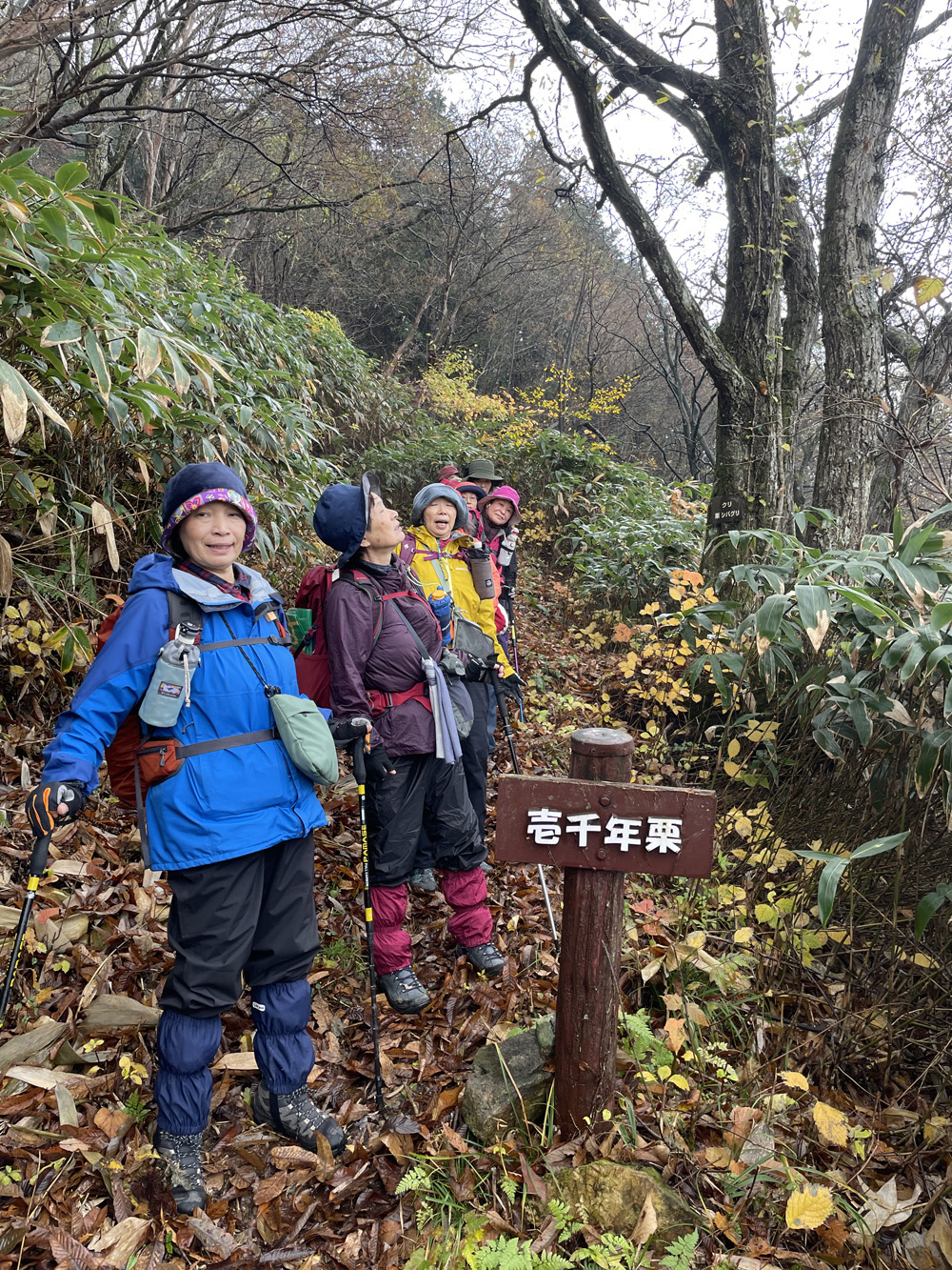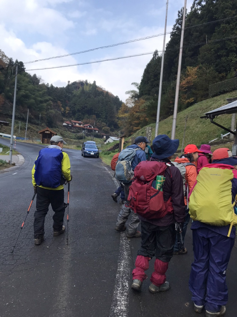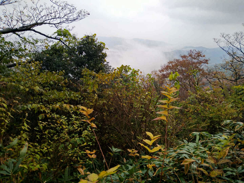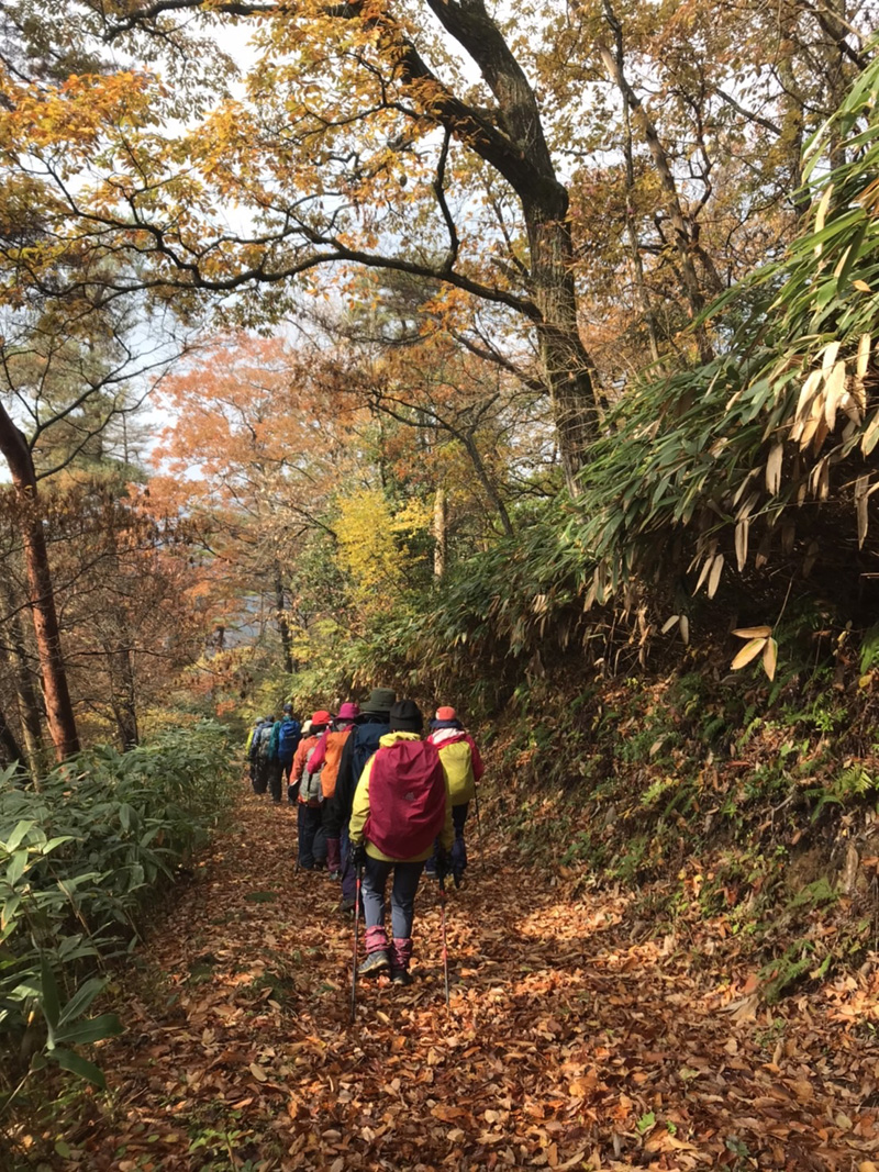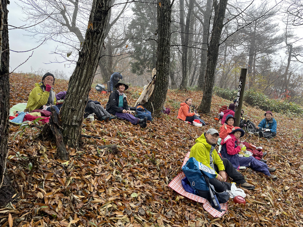 前日の雷雨に悩みましたが、決行を通知したところ続々と快諾の返事が届き、力付けられました。 駐車場でいきなり雨脚が強く降りだし、雨装備を完璧にしてスタートしました。 雨は降ったり止んだりを繰り返し、6合目を過ぎた頃ようやくあがりました。 心配していた北風の影響はなく、むしろ汗ばんだ顔に気持ちいいくらいでした。 頂上からの展望は望めませんでしたが、眼下の低山を埋める重そうな雲海が幻想的でした。 「積雪時しか登っていなかったので、こんなに石がゴロゴロしていたとは!」 「楽しかった、雨でも平気」等の感想をいただきました。 全員が協力しあってこその安全山行だったとかみしめています。