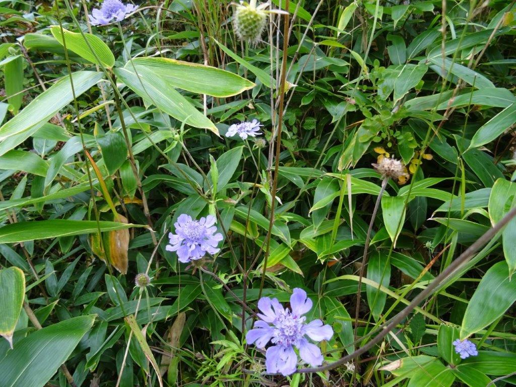 もしかしてと思っていたマツムシソウの咲く丘は笹薮と化し、一部にのみマツムシソウが残ってました。