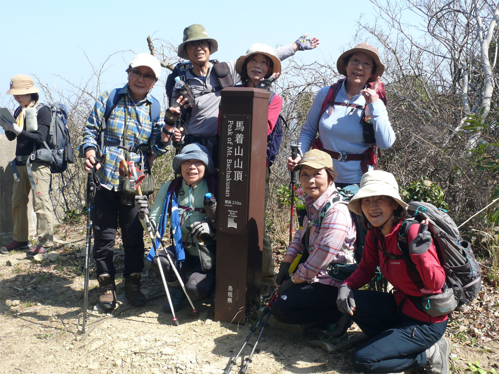 お天気はとても良かったが、黄砂のため隠岐の島と大山は見ることが出来なかった。登山口からゆっくりと整備された道を歩くと馬着山、五本松公園に向かう所々に椿の花がとても綺麗に咲いていた。