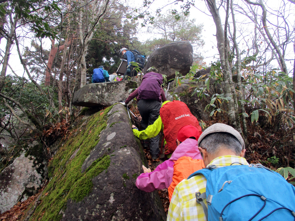 岩伏山は約10年ぶりの企画となる。登山道は広くて歩きやすく、よく手入れもされている。山頂にはスサノオノミコトが乗って来たという船のような岩があり、山名の由来となっている。