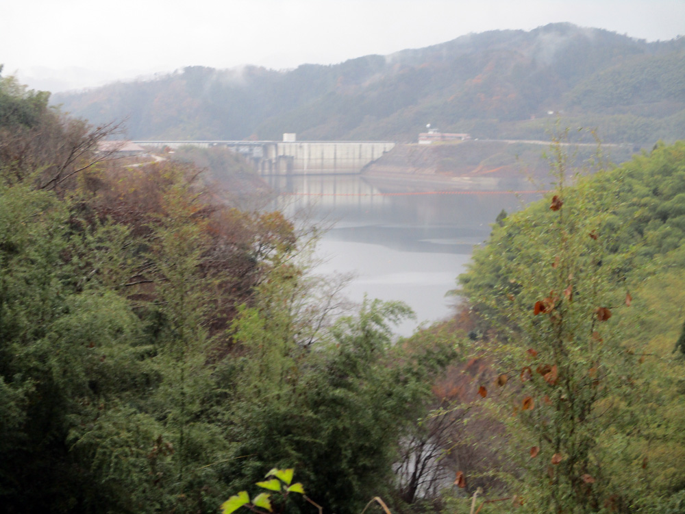 一周して下山路から見下ろす尾原ダム、さくらおろち湖