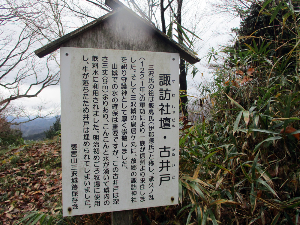 十兵衛成の奥に三沢の池。延命水で何名か試飲