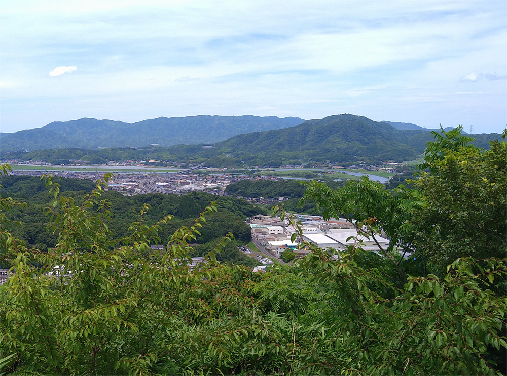 大橋川を挟んで対峙する和久羅山、嵩山は戦国期の舞台
