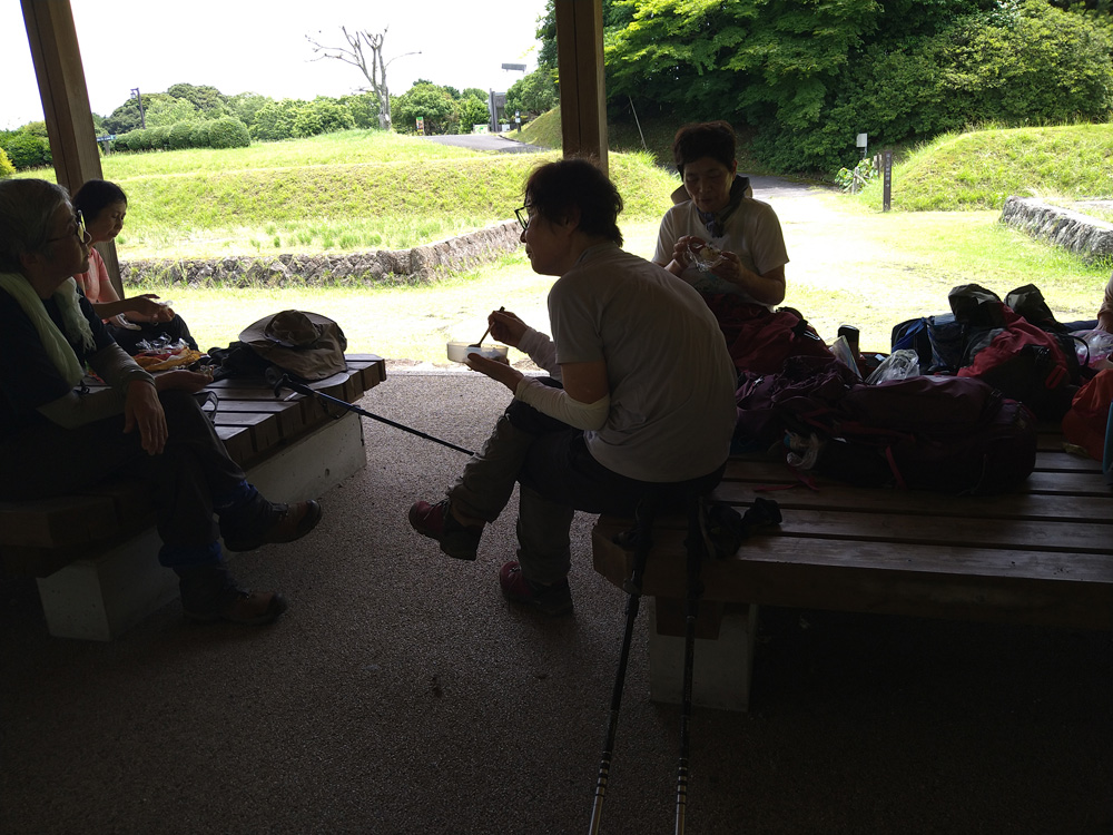 風が吹き抜ける風土記の丘東屋で昼飯とし、後半の茶臼山へ。