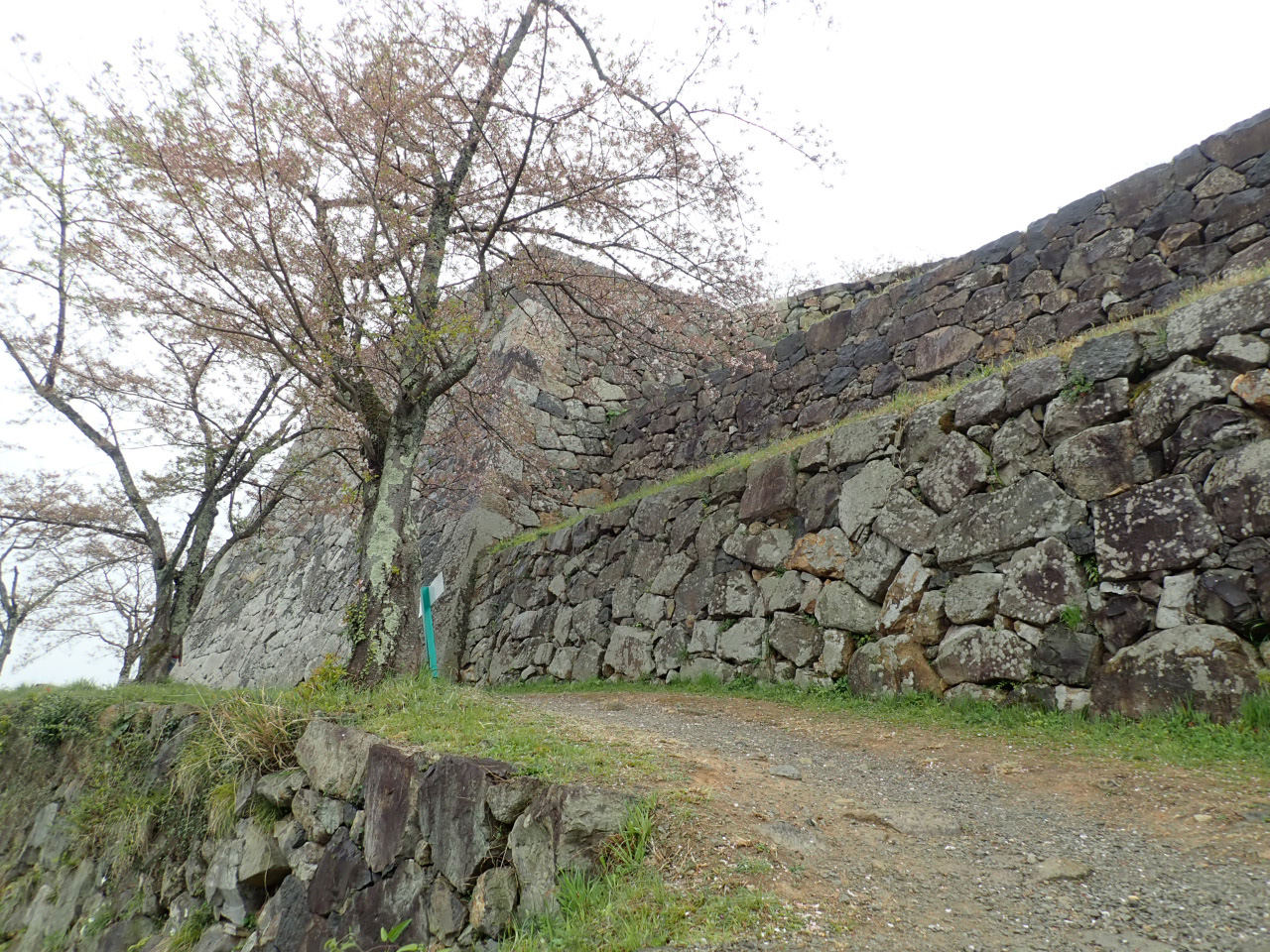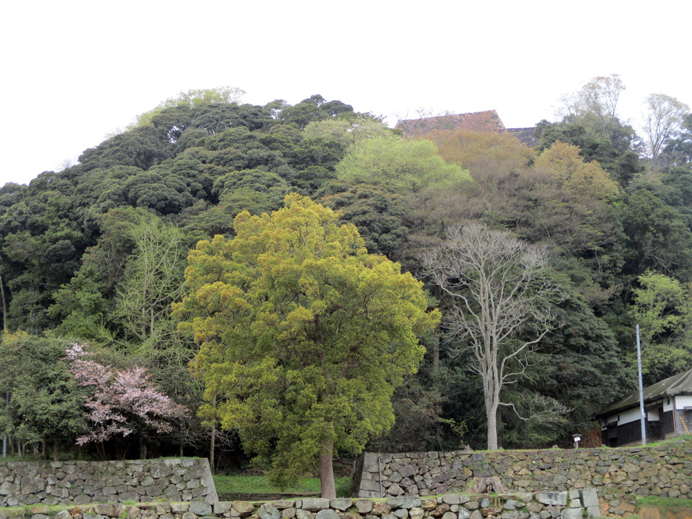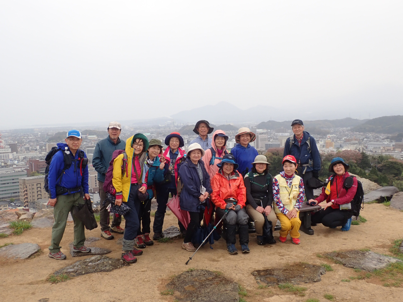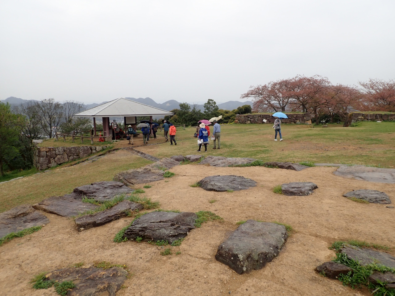 雨はポツポツから小雨に変っていたが、全員元気に米子城跡に移動。