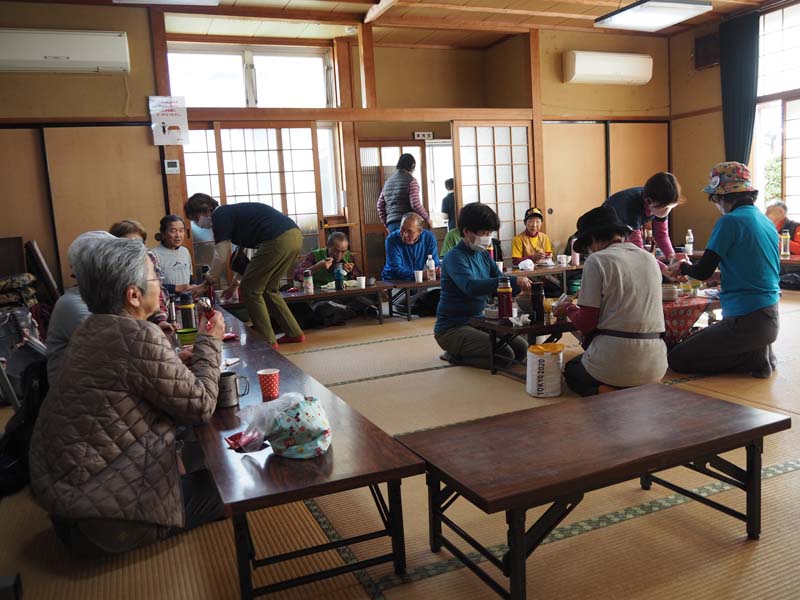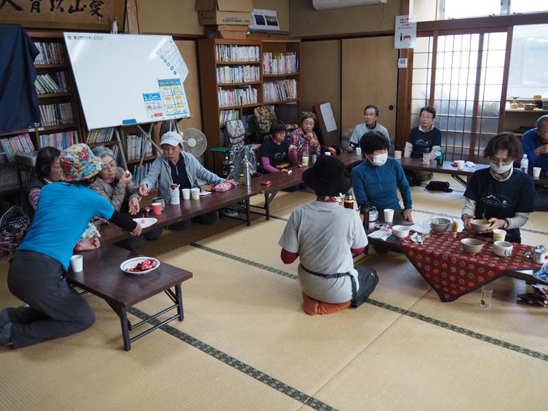 昼食のあと、お点前での懇親や おちらと村・森広氏のお話、地元農産品市場での買い物は すばらしく