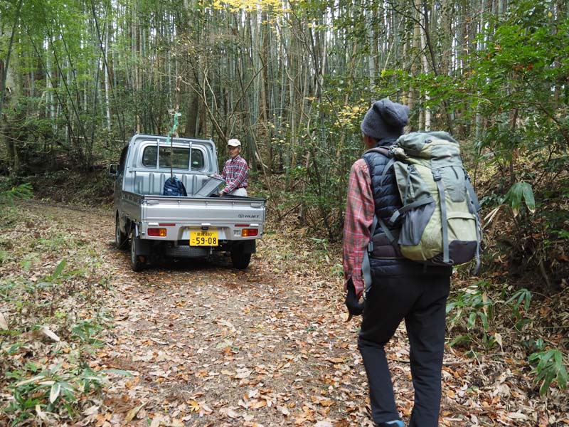 今日の植樹の ヤマボウシは25kgの重量級を含む2本を、軽トラックで山頂直下の階段まで運んだ。