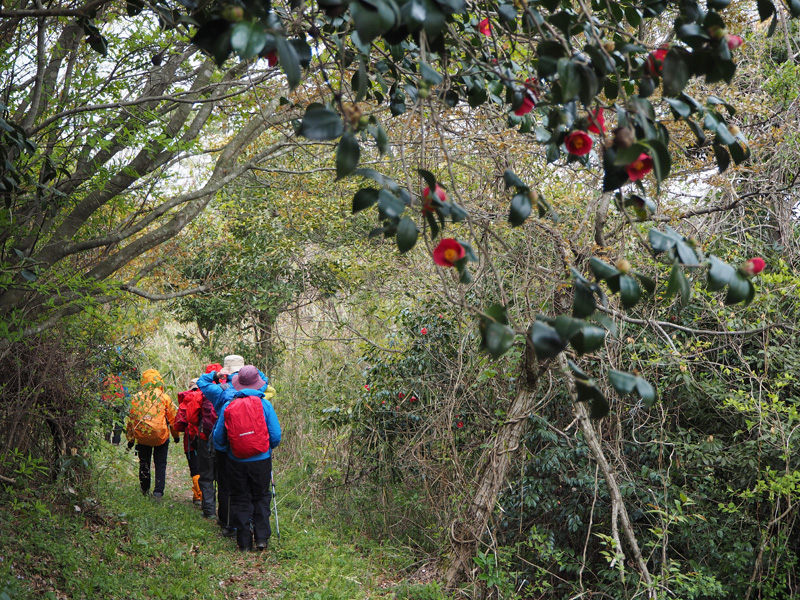 ヤブ椿の下を進む姿は絵になるだろう!
