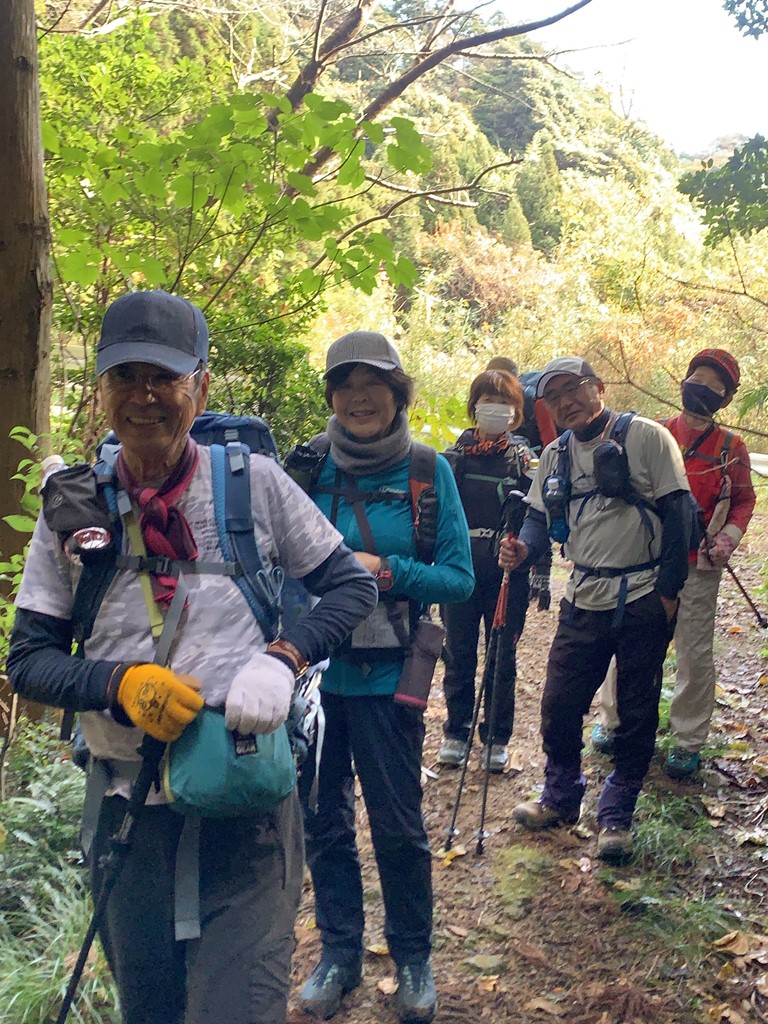 登山道は7月の豪雨の影響もあり、所々斜面が崩れている箇所もあったが、緩やかな道が続き、歩きやすく落ち葉でフカフカだった。