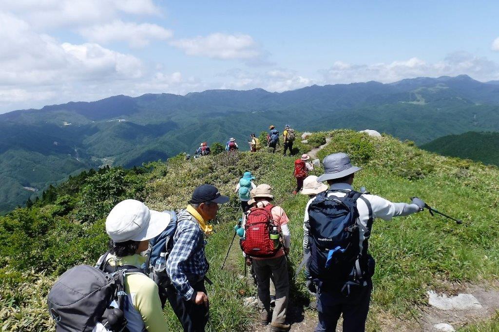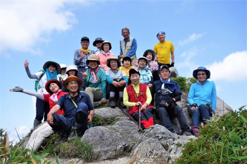 梅雨入り時期で天気を心配したが、見事に晴れ渡り、山頂からは周辺の山々360度の大展望が楽しめた。