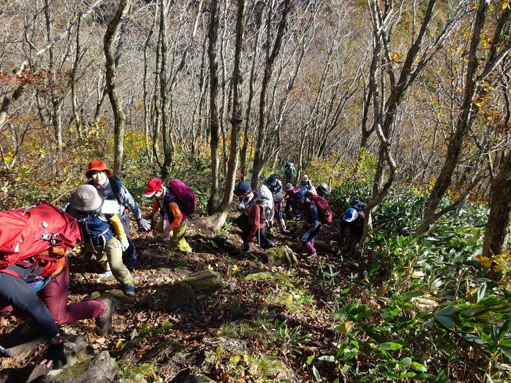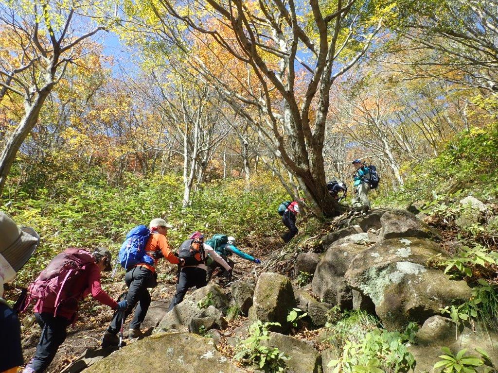 途中、厳しい急登や危険な岩場の上り下りがあったり、一時強風にも襲われたりしたが、この集団が尻込みすることはなく、