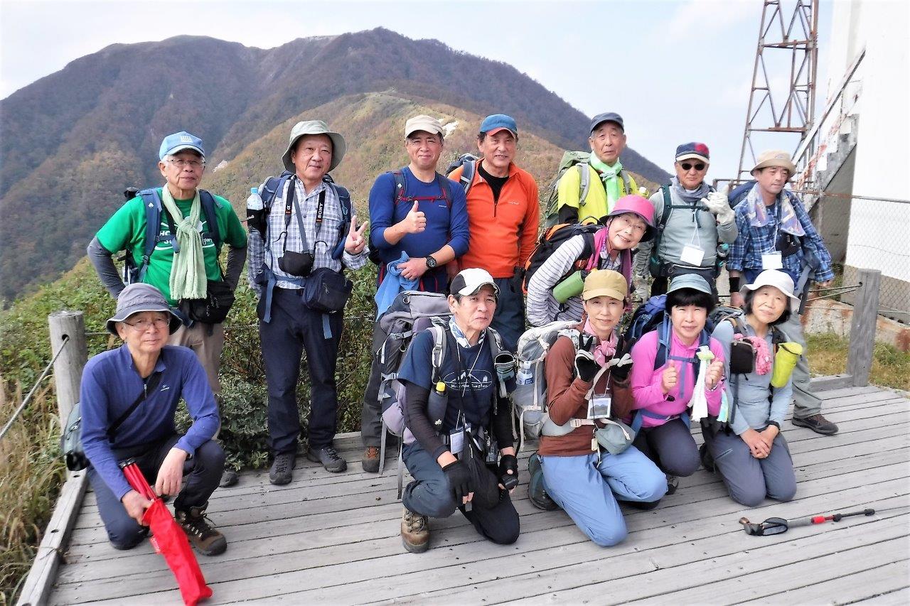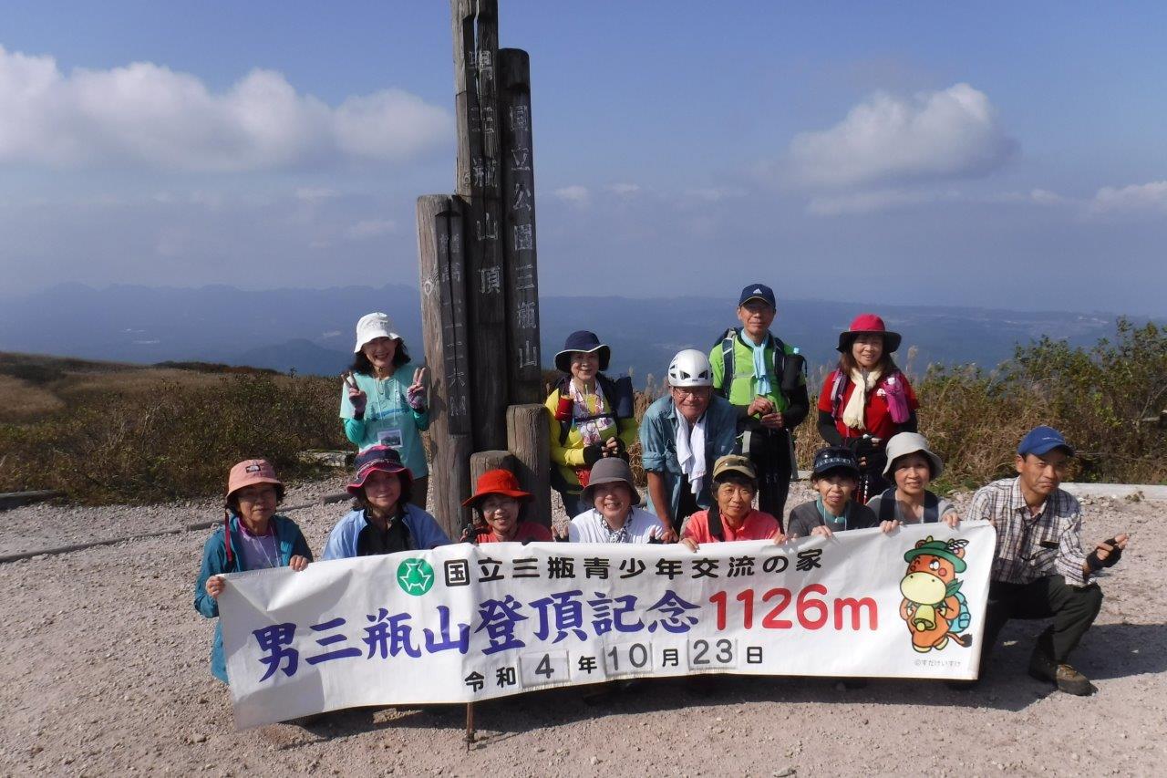 二日目 三瓶登山 第1コース(北の原〜男三瓶〜女三瓶)1班 男三瓶頂上で記念撮影