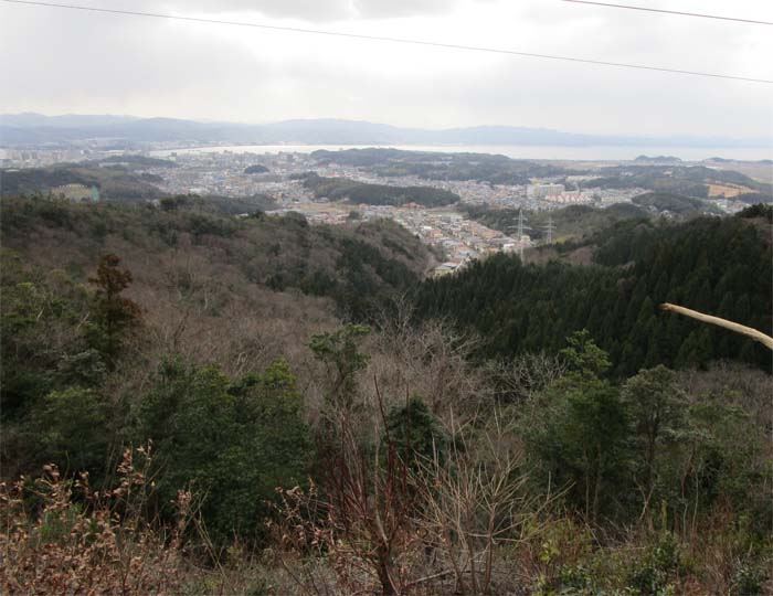 宍道湖方向の大展望。市街地のかわいいポッコリ山は摩利支神社の山