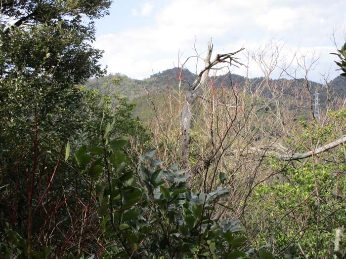 本丸から歩いたルートを振り返る。ピークは左から”大高丸””尻廻し山””玄武山”